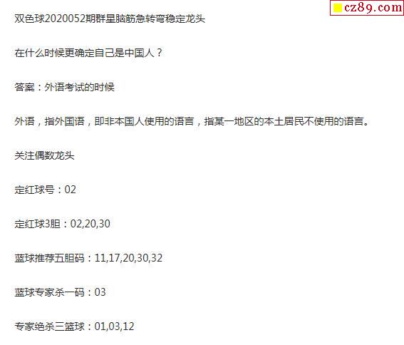 20年福彩双色球第052期 群星脑筋急转弯定龙头字谜