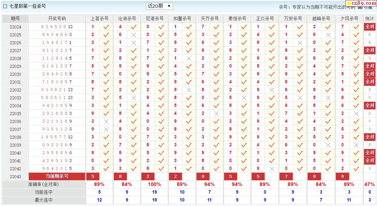 七星彩043期 澳客各路专家直选杀号预测推荐