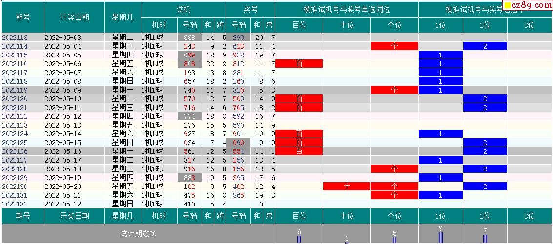 22年132期福彩3D试机号走势图表分析