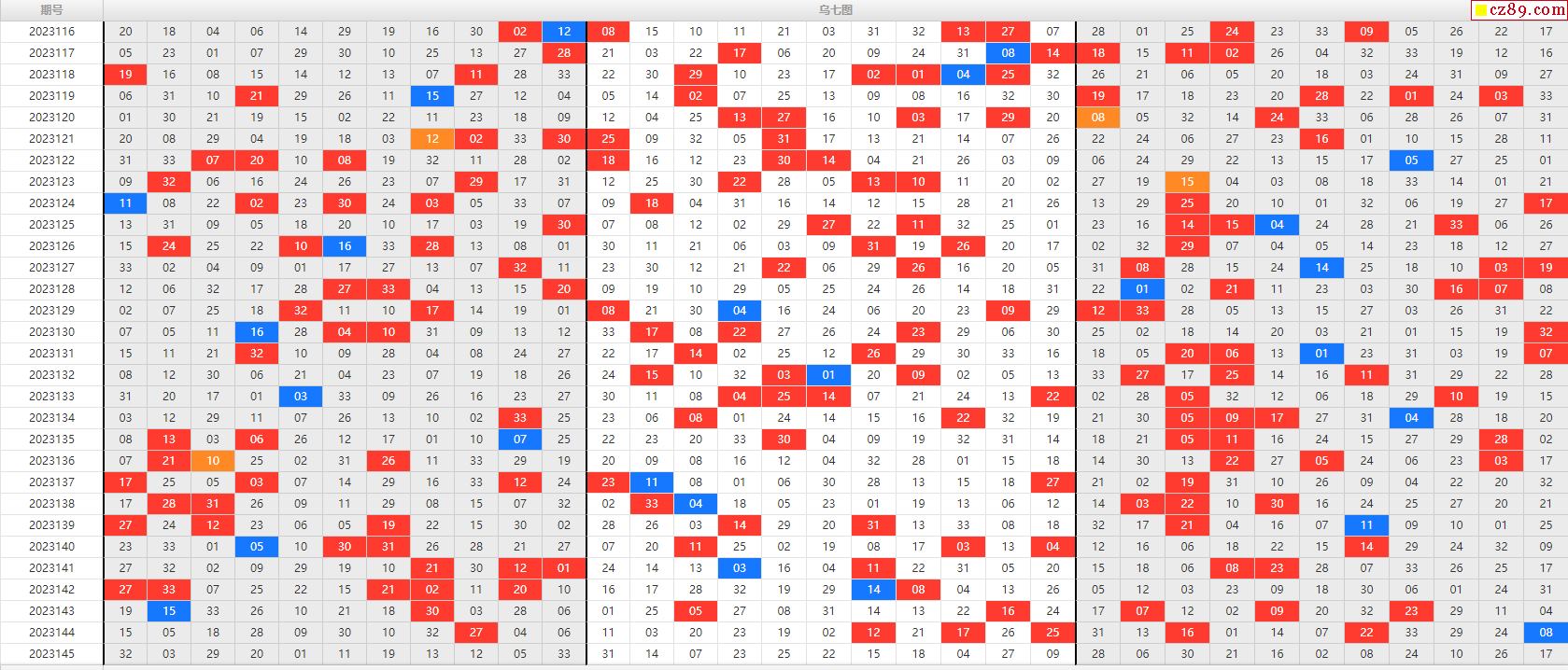 23年福彩双色球145期乌七图表
