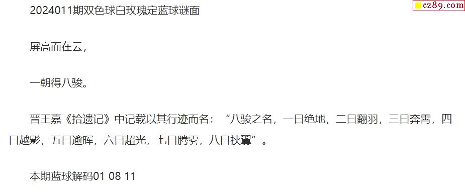 24年福彩双色球011期 白玫瑰定蓝球字谜