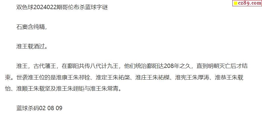 24年福彩双色球022期 哥伦布一句杀蓝球字谜