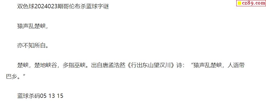 24年福彩双色球023期 哥伦布一句杀蓝球字谜