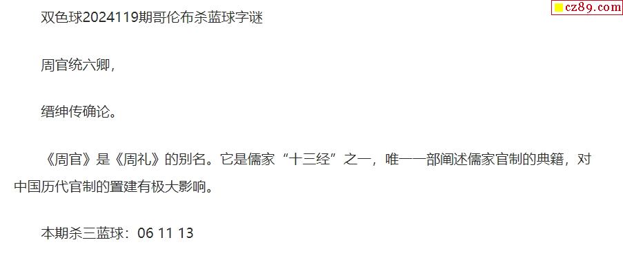 24年福彩双色球119期 哥伦布一句杀蓝球字谜