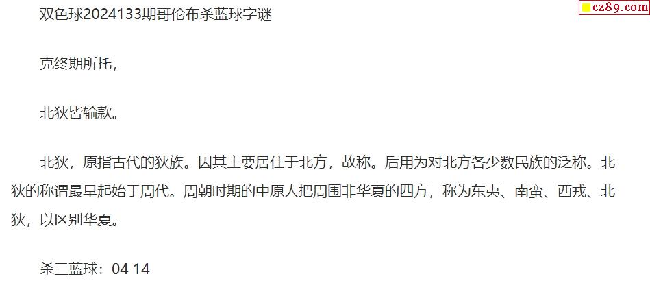 24年福彩双色球133期 哥伦布一句杀蓝球字谜